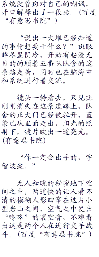 因为系统前不久无法对斑做出任何这个世界的解释和帮助,导致斑对这东西有着一丝的不满,本来就脾气不怎么样的他,这次说话更是直接加上了“无能”二字。