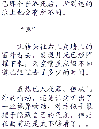 在斑刚走出蓝染的大屋,往外踏出几步之后,身后屋内便传来了蓝染温和的声音:“通过地狱蝶已经传来了消息,不嫌弃的话,可以在我们五番队的队舍旁边的一处独立小屋居住下来,本来那里就是因为数名队员牺牲,而暂时控制下来的队舍之一。”