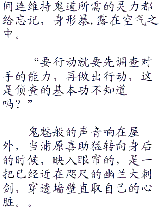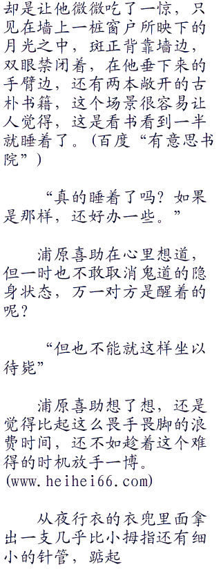 就在浦原喜助潜入这五番队的地盘不过数息的时间之内,经过一阵摸.索之后,终于抵达了斑暂时所住的这座隔断式小屋,此时正站在门外,隔着一面墙偷听着里面的动静。