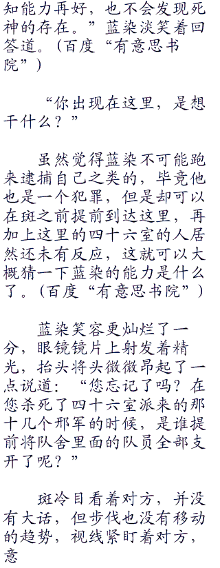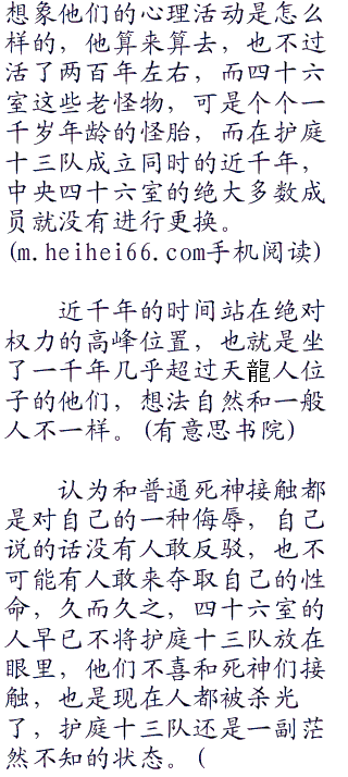 门外的静灵庭的死神什么都没有听到,中央四十六室,离的最近的地方不是护庭十三队的任何一个队舍,而是处刑之台的双殛,就算是斑没有做任何防声措施,若不靠近这里,是很难发现此处经历了如此的大屠杀的。