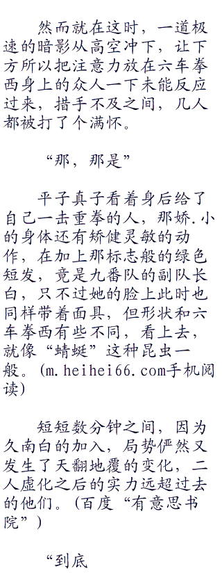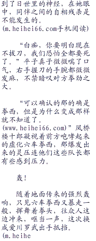 在抵抗的同时一扭身,平子真子一脚踢出,总算是把六车拳西逼开一段距离,那是虚的气息!