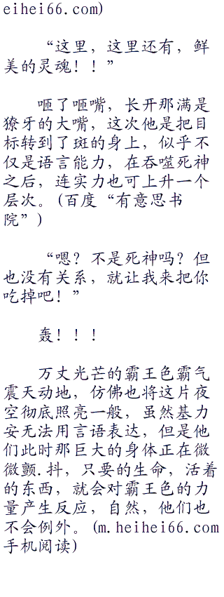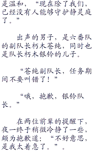 “要,你要记住,活着就是要有无法预料的事情,才会有意思啊。”蓝染笑着解释完这句话,一下又将瞬步的速度再提高了一个层次,让东仙追起来都觉得有些费力,转眼间,静灵庭已经映入眼帘。