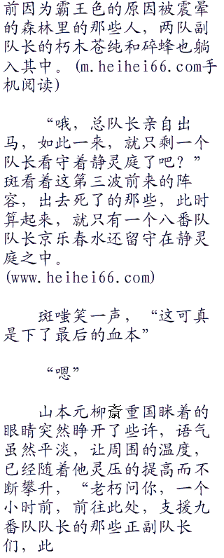 斑眼中少有闪过异茫,这恐怕是他来到尸魂界之后,感受到的最强灵压了,而且刚才那一招显然不过打个招呼的程度,完全不是全力。