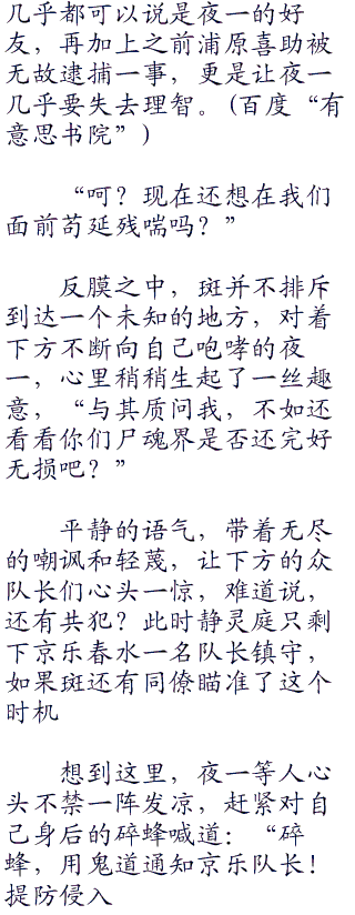 突然,身后传来几道焦急之声,只见浮竹十四郎,卯之花烈,夜一等人竟已返回,还有这包括碎蜂,朽木苍纯在内的十几名二番队和六番队的十席。