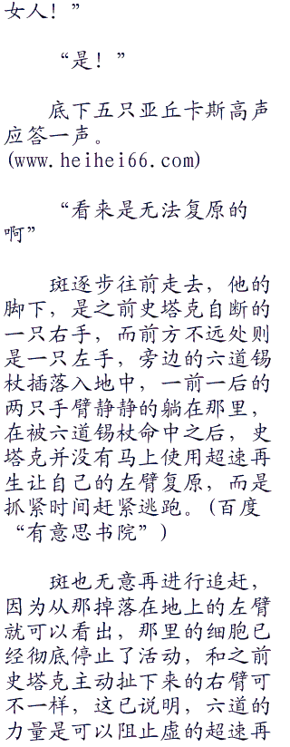 “是想逃了吗?但在此之前让我实验一个东西怎么样?”斑突然把左手也探出,一眨眼的功夫,六道锡杖已在他的手中。