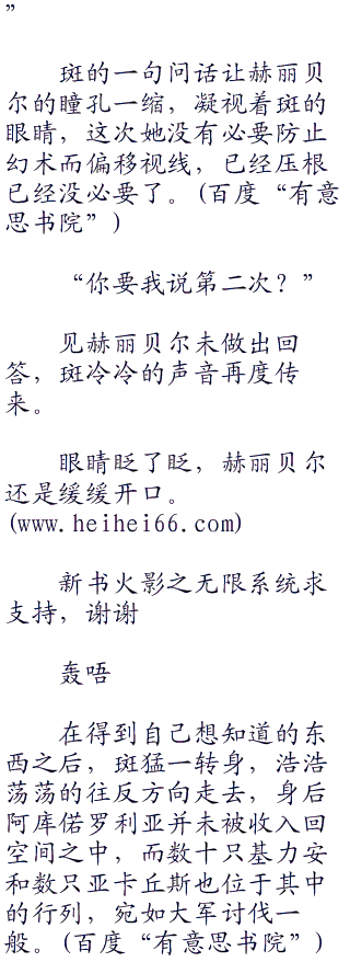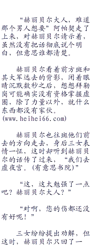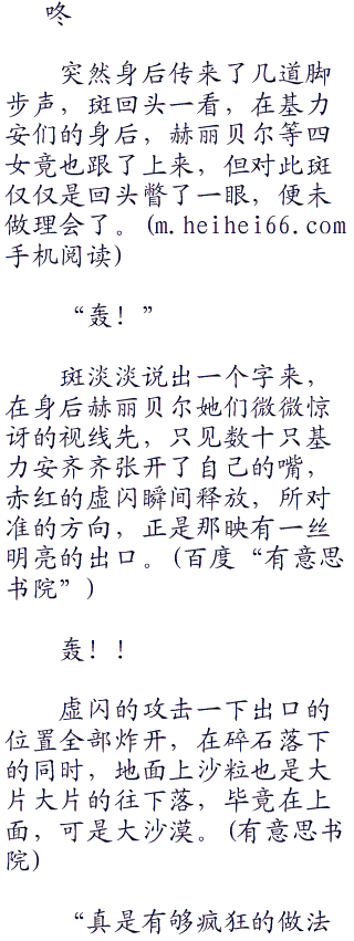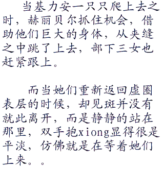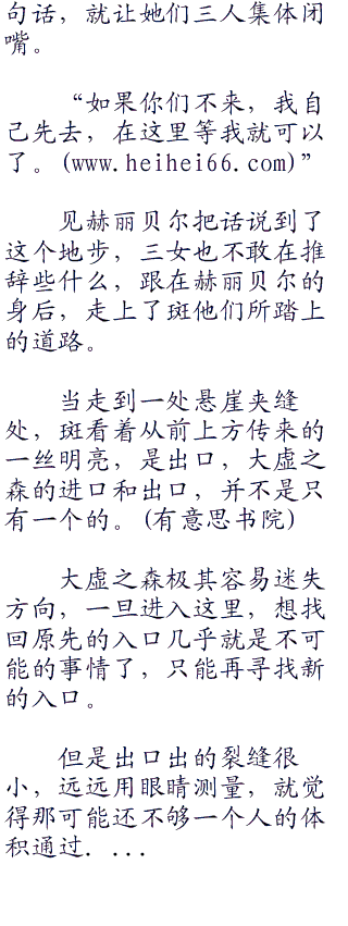 不知道表达的到底是什么意思,在讲芬朵儿他们吞进肚子里之后,突然发出一声哽咽,将转动脖子,将头对准身后的赫丽贝尔她们,让四女心头一颤,果然是要轮到自己了吗?