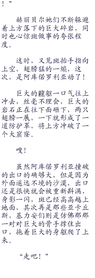 但是,只见阿库偌罗利亚并没有张开血盆大口,而是将头缓缓的地了下来,直到下巴触及地面,然后斑才不轻不急的走了下来。