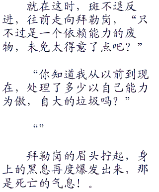 拜勒岗未在意天花板上的情况,目光只是紧盯着王座下方的斑。