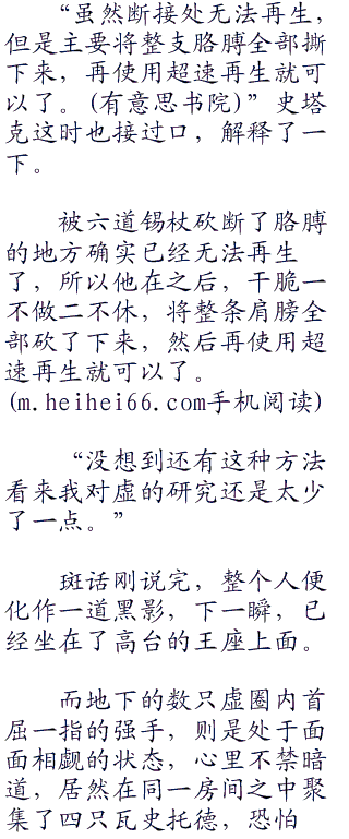 进入内殿之后,这里显得更加的宽敞了,两边无数的白柱直顶天花板,此时,已经有人等待在此处,斑凝神一看,居然又有了一只瓦史托德,而且还是自己见过的,史塔克,在十几年前被斑砍下一臂的瓦史托德大虚,但此时颇为令人惊讶的却是,现在的他双手是健全的。