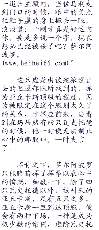 妮露那所谓的两个同伴,沛薛和咚德恰卡两只虚,当看见虚夜宫内部的守卫阵容时,不禁吓得抱成了一团,也不能怪他们的胆子过小,而是斑安排的守卫阵容着实太过夸张了一点。