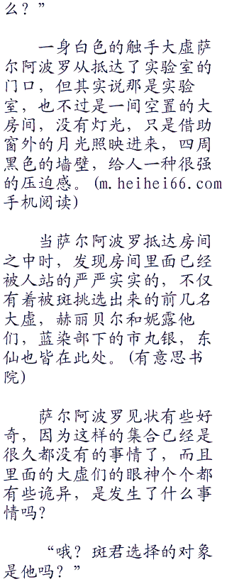 此时的斑和蓝染两人站在这黑漆漆的监控室之中,动手调了一下监控台上的几个按钮,蓝染将一面屏幕的画面调转到了大虚当中,在几经周折之后,终于将画面调到了几只外形特别的虚的身上。