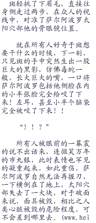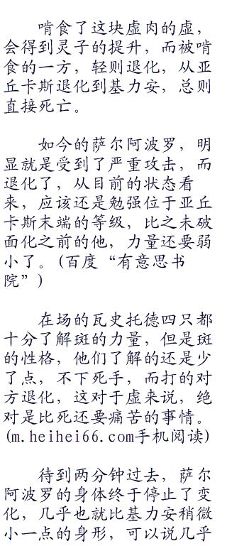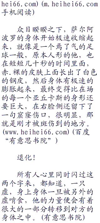 要是换做进化前的他,受到如此的侮辱,还不至于失落到哪里去,但是他刚刚完成了进化,并且明显感到了自己获得的强大力量,本意气风发的攻击两人,但下一瞬,就被蓝染一根手指头给挡下,这一来,萨尔阿波罗的心理阴影面积,无法估计。