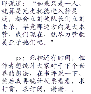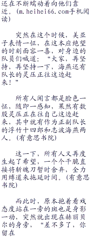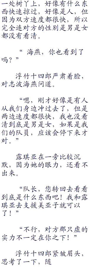 随着注意力被美亚子转移了过来,其他的队员们也趁着这个机会赶紧后侧,形成了一个锥子的阵型,美亚子站在最前面,这时在面对强敌的时候,最常使用的站法。