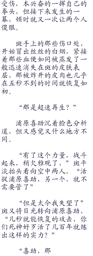 浦原喜助往那些昏倒的队员那边望去一眼,但紧接着,斑身上的气息就涌入大地之上,下一
