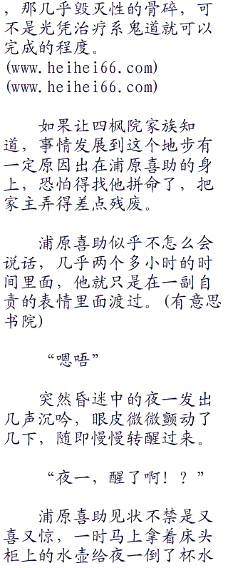 浦原喜助闻言还没来得及高兴,卯之花烈的下一句话音语气便骤然一转,凝声道:“但是,受伤的实在太严重了,作为人体上下纽带的盆骨已经出现裂痕,背骨几乎受到了毁灭性的咬击,那只龍的力量之大,真是难以置信。”