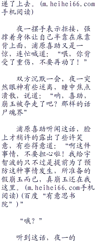 卯之花烈露出一个微笑,“算是没有生命危险目前还处于昏迷之中,但是请放心,没有大碍的。”