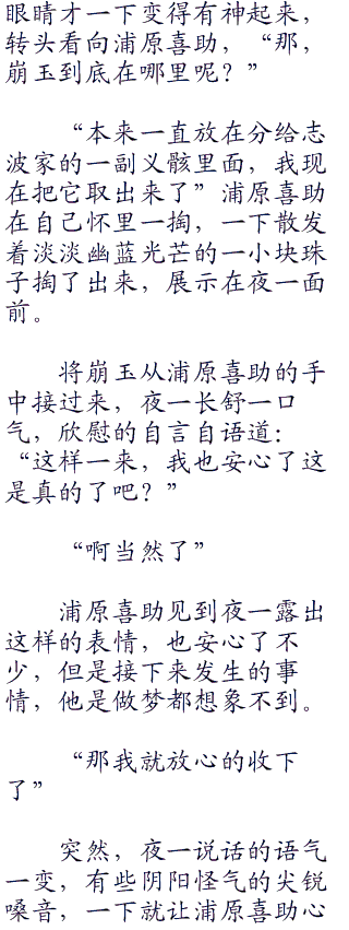 二人的脸色显得都算平静,看来应该没什么问题,但即便如此,浦原喜助还是加快步伐跑了上去,事情皆因他起,所以浦原喜助内心很是自责的。