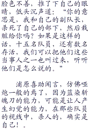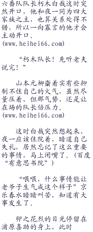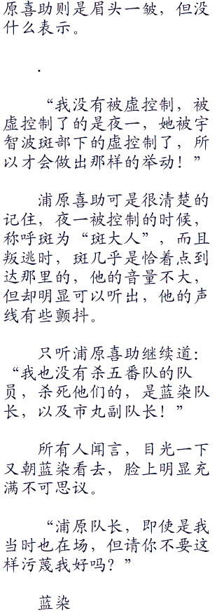 在蓝染押着浦原喜助进行一番队队舍大约有个十几分钟的时间过后,突然里面传出总队长的一声爆呵,把在队舍附近巡逻的队员,措手不及中吓得差点掀倒在地。