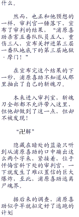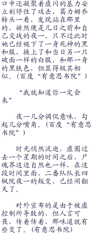 夜一嘴角勾起,抿嘴一笑,“不愧是队长,拥有的实力不需要多说,速度我想也凌驾虚夜宫大部分破面的响转速度。”