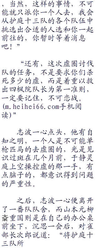 隐秘机动队自然是不可能的事情,他们相当于暗杀部队,所以不管碎蜂情绪再是如何的激烈,山本元柳斎重国都觉不会动用二番队的一兵一卒。