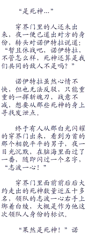 “我只不过是就事论事而已”夜一对于诺伊特拉的震怒显得毫不畏惧,摆出白打的动作。