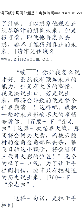 ;;;;“我要说的就是这个,未来的木叶,惨不忍睹。我到来,就是不想看到那样的画面,按照我所知道的未来,你会因为重病而死,但是我不想看着你死去,于是我救了你,改变了未来!!”严肃的看着千手柱间,凌霄淡淡的说道。