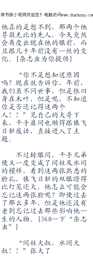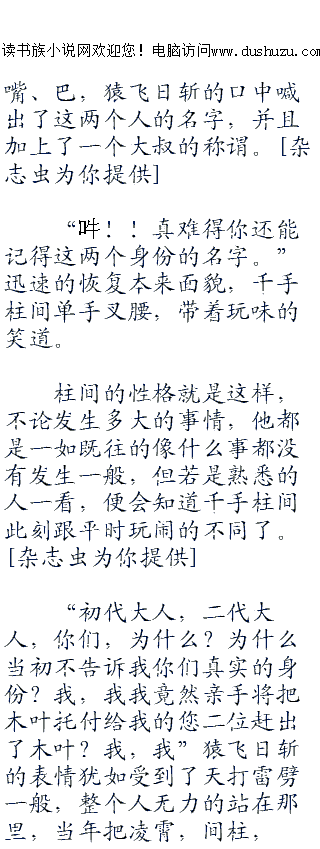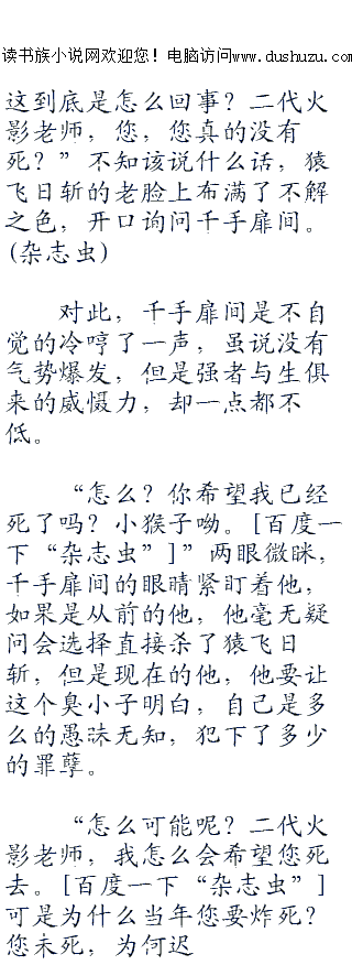 ;;;;眼神惶恐的看着眼前这个人,猿飞日斩极力的想要平复内心错乱的心情,他真的不敢相信,眼前这个人是真的二代火影千手扉间,但是眼前这个人,不管是从外貌还是从查克拉气息,无疑都是自己多年前死去的老师千手扉间。