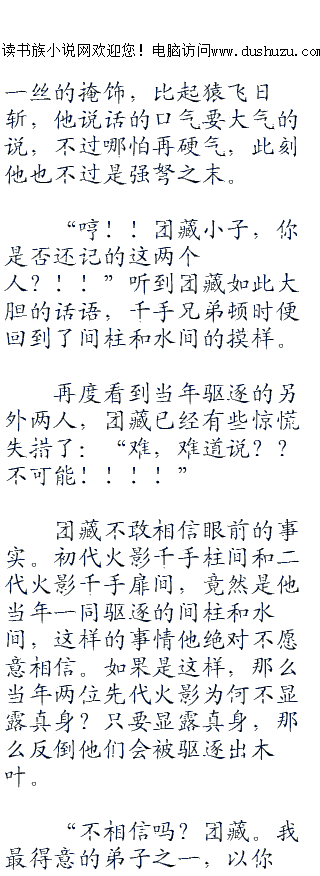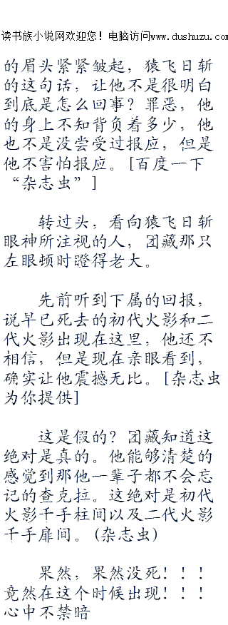 ;;;;“团藏,你终于来了啊,呵呵呵~~我们的报应啊,来了”看到从小一起长大的团藏到来,猿飞日斩苦笑着脸,看着团藏说道。