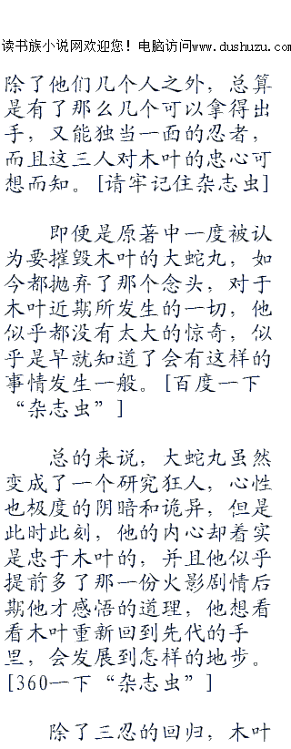 ;;;;木叶再度发生了一件可以被记入史册的大事。在二战时期崛起的木叶三忍返回木叶,并且重新投入了木叶的怀抱。