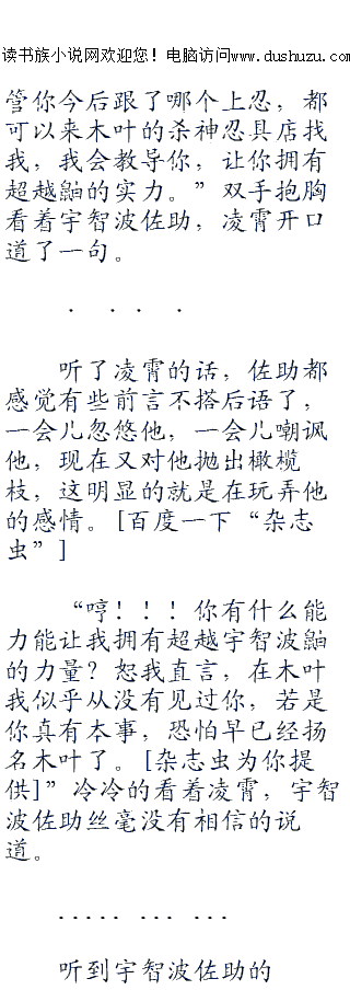 ;;;;“你是什么人?为何来我宇智波一族的驻地?!”冷冷的看着凌霄,宇智波佐助开口质问了一声。不认识凌霄,更没有在木叶见过凌霄,让他以为凌霄是来找茬的。