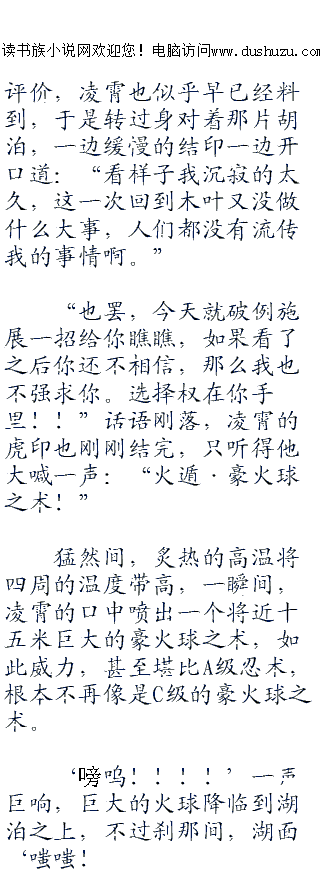 ;;;;看着宇智波佐助站在湖边施展火遁的c级忍术豪火球之术,凌霄情不自禁的双手鼓了一下掌。