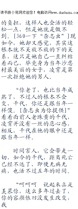 ;;;;凌霄还是跟当年一样的年轻,而她已经步入晚年,这个时候她才想起当年凌霄曾说过的话:就凭你,也想左右我的思想,你的确生的翘楚可人,但是你的容颜又能维持多久?十年?二十年?最终也不过是一撮黄土罢了。
