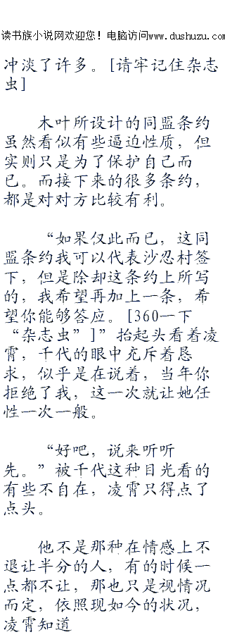 ;;;;其实凌霄看的出千代已经同意了,只不过千代没有主动说出来而已。说实话,这同盟的跳跃内容凌霄也看到了,说实话,看到刚开始的几条,的确是不会有多少人会同意,但若是看下去的话你就会发现,之前的念头被