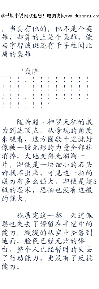 ;;;;“原本是给捕捉九尾进攻木叶准备的,现在就先让你尝尝这一招的威力吧!!”一句话从漩涡长门的口中吐出,只见其强忍着身体的疼痛,双手合十,开始调动起了庞大的查克拉。