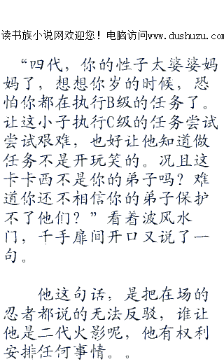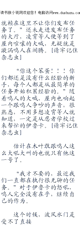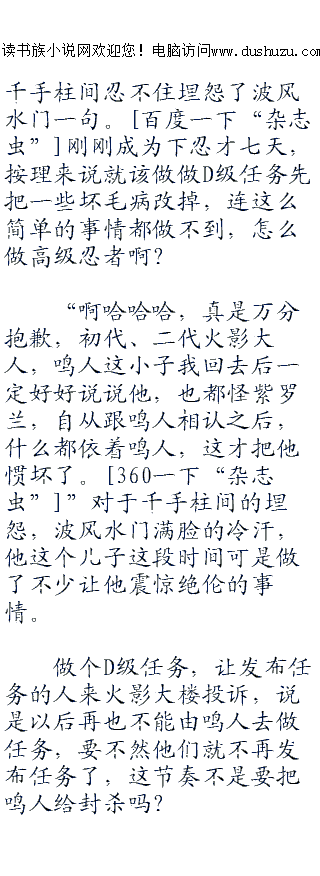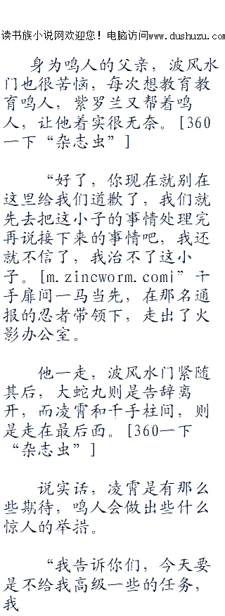 ;;;;“大事不好了,火影大人们,请你们立刻去任务发布地点吧,鸣人他硬是扯着中忍以上忍者才能做得任务在那里耍性子呢,说是一定要执行高级的任务,他是四代火影大人您的儿子,我们又不能将他以违反木叶法规逮捕,所以请您立刻过去制止一下吧。”门外的忍者还未进屋,就听到他喘气的喊着。