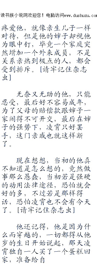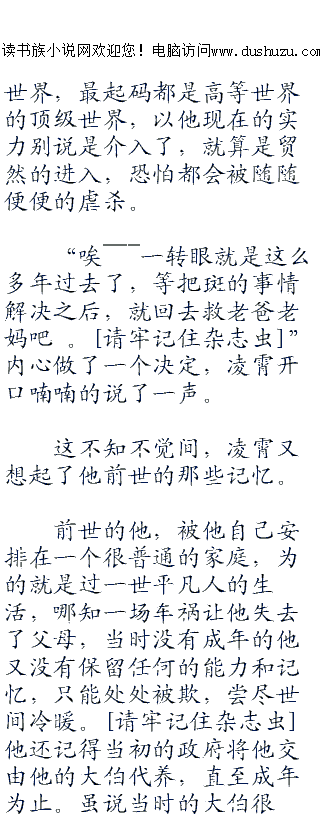 ;;;;为什么会如此呢?原因就是凌霄在火影世界的这些年,感受到了太多的亲情,这让他情不自禁的总是会想起自己前一世父母,他那时候虽小,但却记得很清楚,父母是多么的关爱他,直到那场事故,