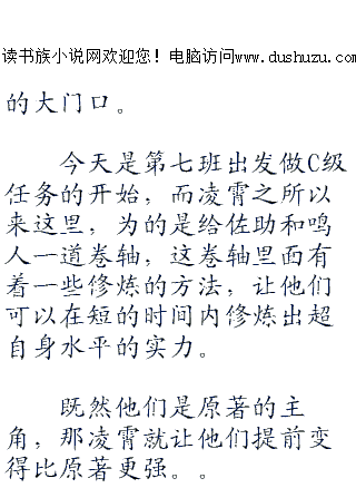 ;;;;≈“在这个世界不会再呆太久了,三年之后的最终之战,就是我离开火影世界的时候。≈“看着原著的主角鸣人、佐助、小樱,凌霄的内心不自觉的想到。
