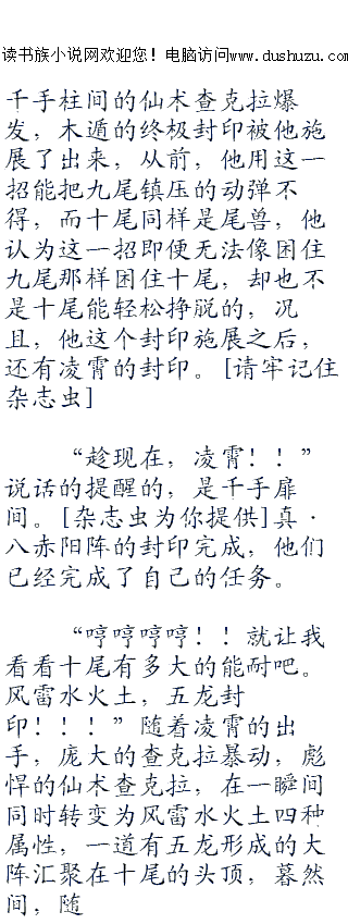 ;;;;“等会儿再来收拾你,现在的首要任务是阻止十尾!!”严肃的对着宇智波斑指责了一句,千手柱间便不再理会宇智波斑。