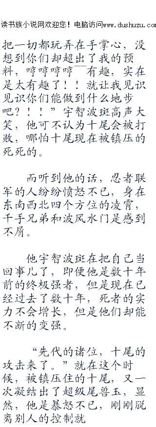 ;;;;“我等你很久了,柱间!!!!!!!!!!!!!”兴奋之中的宇智波斑,松开了对十尾的控制,一个飞跃窜到了距离忍者联军不远的高岩之上,俯瞰地面上的千手柱间。