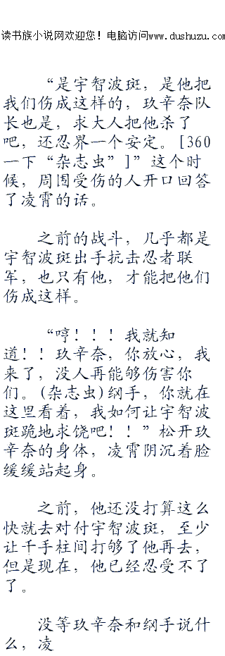 ;;;;恢复了纲手的伤势,凌霄也在纲手的带领下看到了重伤的玖辛奈。
