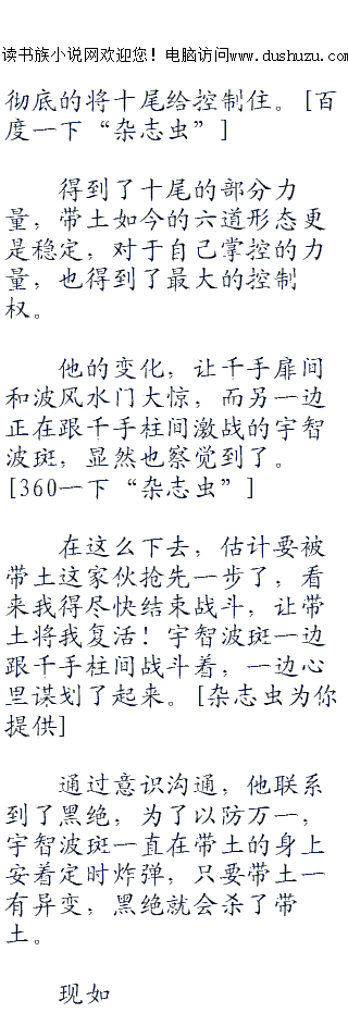 ;;;;下一刻,他就感受到了十尾暴动所带来的痛苦,被其吸收在体内的十尾,根本不想老实的被他所利用,他的野性打算占据带土的身体,从而让自己