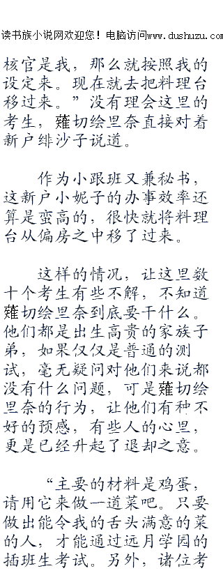 ;;;;环视了一眼四周的所有人,在场的人,大部分都是有些身份地位的贵族,但是说实话,恐怕有真本事的没几个,若是不然,也不会因为考官是薙切绘里奈就逃跑,一群只知道骄傲自己的身份,却没有真才实学的垃圾啊。