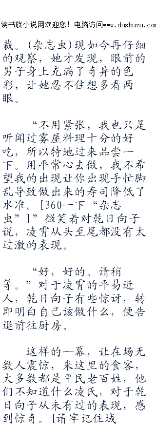 ;;;;服.务员还未说完,来者已经猜到了大概是怎么回事,此人不是别人,正是这家雾屋料理店的老板兼主厨,乾日向子。