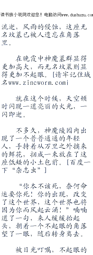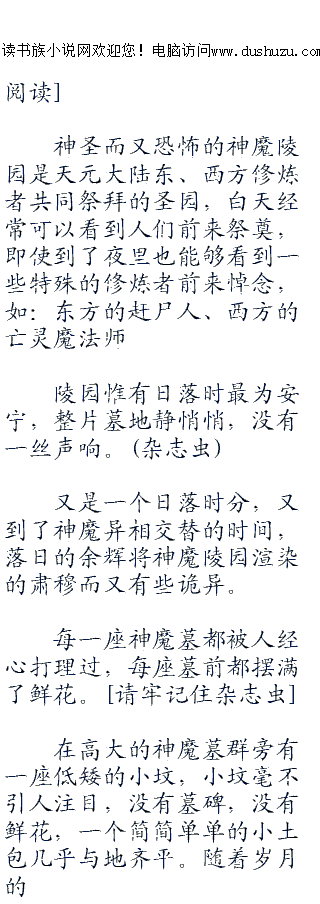 ;;;;神魔陵园位于天元大陆中部地带,整片陵园除了安葬着人类历代的最强者、异类中的顶级修炼者外,其余每一座坟墓都埋葬着一位远古的神或魔,这是一片属于神魔的安息之地。