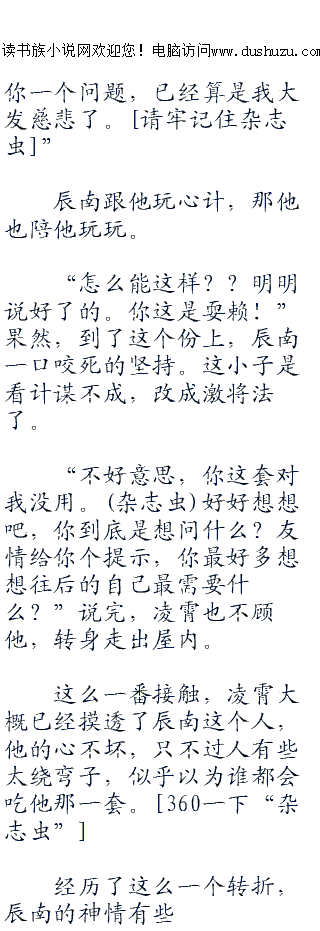 ;;;;但是凌霄又有何惧?辰南想问的他基本都知道,他想要的答案,他基本也猜的到,熟悉原著剧情的他,没理由解答不了辰南的问题。