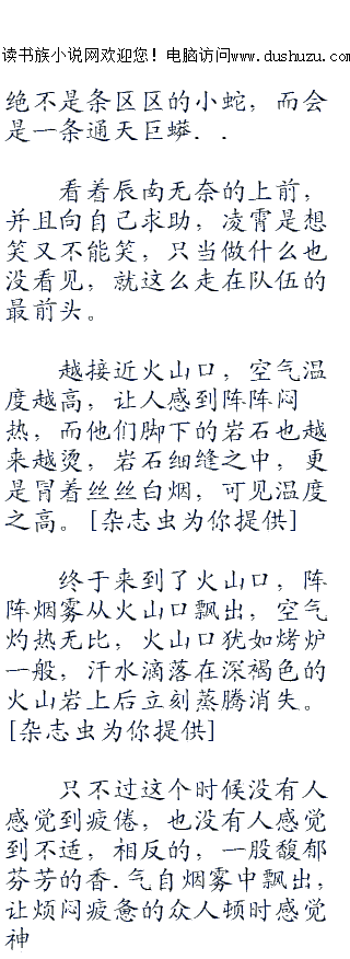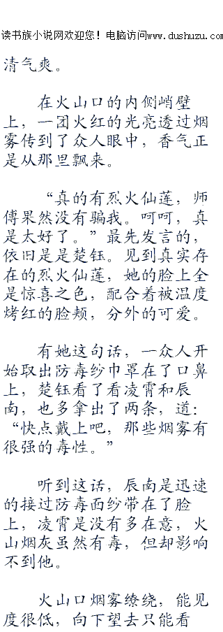 ;;;;转眼,时间已经到了寻找烈火仙莲的第六天,凌霄和辰南跟随着楚钰一行人终于来到了他们的目的地,一座火山出现在他们的面前,火山口冒着层层烟云,仿佛随时都会喷发出来一样。