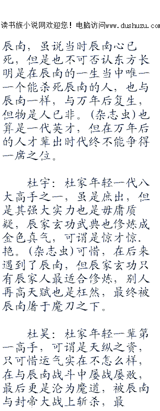 ;;;;东方长明:万年前,大魔王东方啸天直系,万年前因东方啸天被辰战杀死,所以设计骗辰南来比武趁机杀死