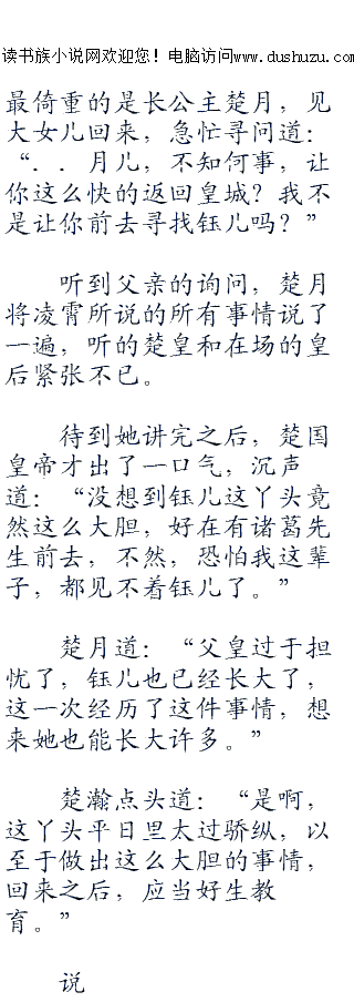 ;;;;楚月外出,而且携带皇家卫队,很显然,这是外出有重要的事情要办。而这个时间段跟原著楚月寻找楚钰的时间段相仿,可想而知,这楚月必定是去寻找私自出宫的楚钰。