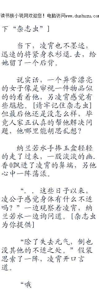 ;;;;楚月没有再来过,到是楚钰,一天来去三趟,像是把凌霄这里当成了家一样。奇怪的是她每次来,都只看凌霄几眼不说话就走了,这让凌霄郁闷无比。