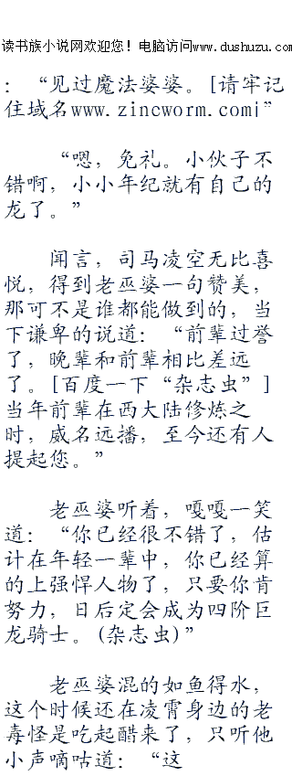 ;;;;老巫婆笑道:“嘎嘎,不要不高兴,好多人想求我教他,我都不教,你不是想飞上天空嘛,我可以交你啊!”